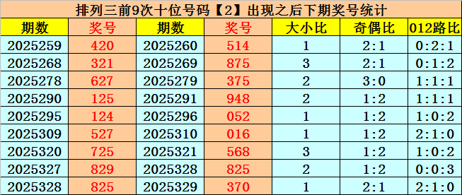 十位号码:十位上期开出偶数、大号、2路号码:2,历史上十位号码2共开出727期,上一次出现时第2025328期,上期奖号遗漏值为17期。